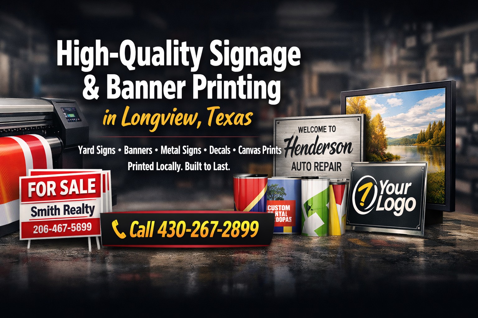 Looking for professional signage printing in Longview, Texas? We specialize in high-quality custom signs and banners designed to help businesses, events, and organizations stand out. Every product is printed locally with attention to detail, vibrant color, and durable materials built to last.